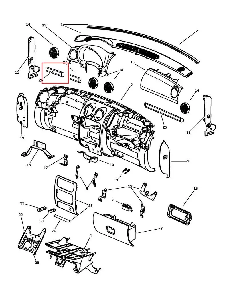 Bezel, instrument panel Jeep Liberty Cherokee KJ WA981DVAA