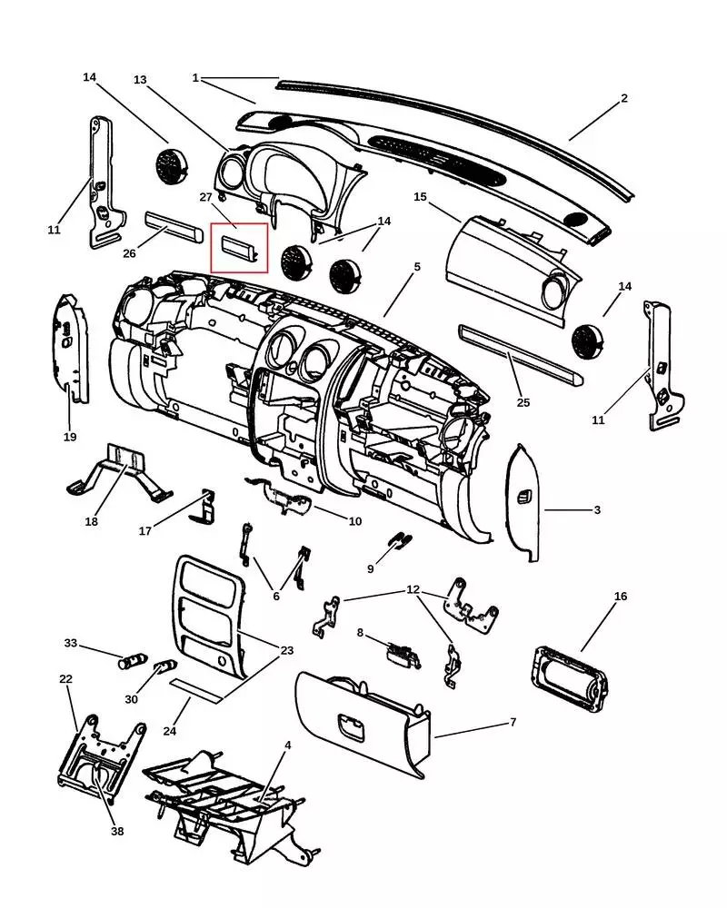 Bezel, instrument panel Jeep Liberty Cherokee KJ WA991DVAA