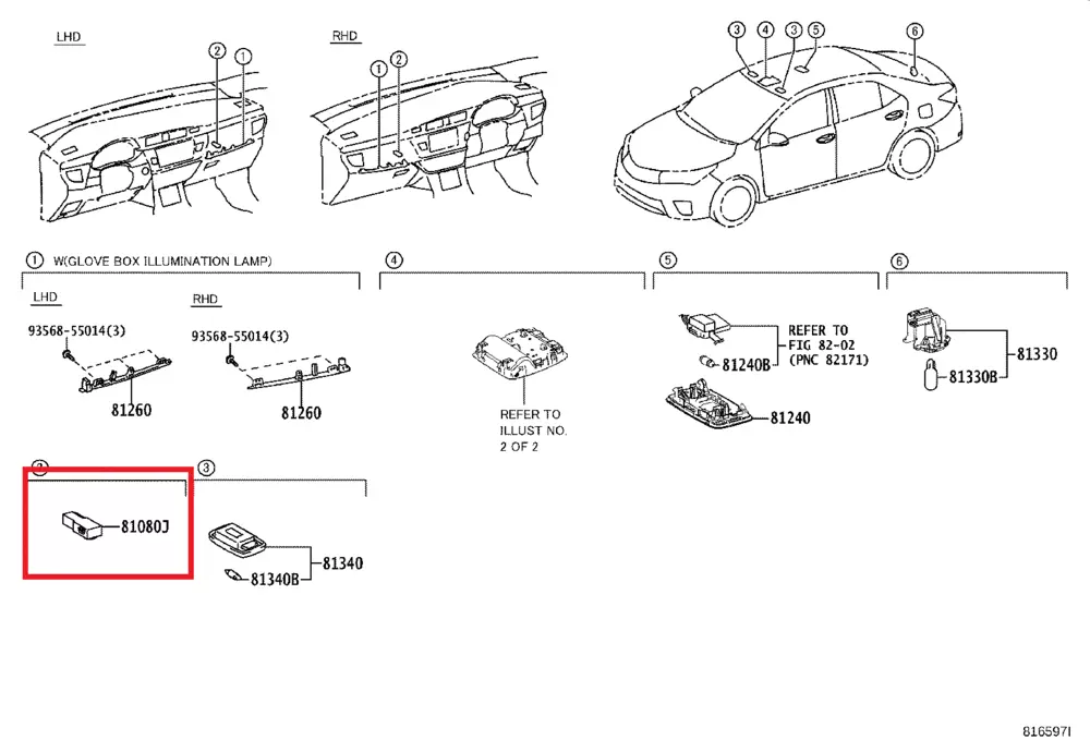 Лампа освітлення салону Toyota Corolla E18 E180 810800D010